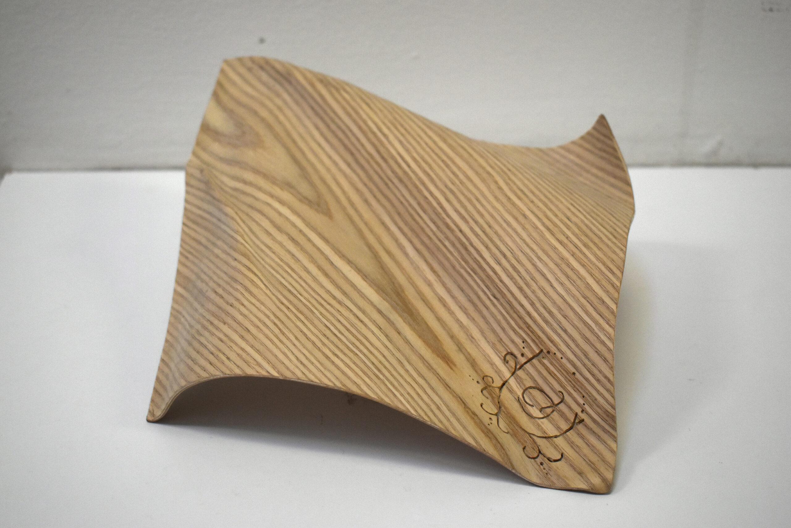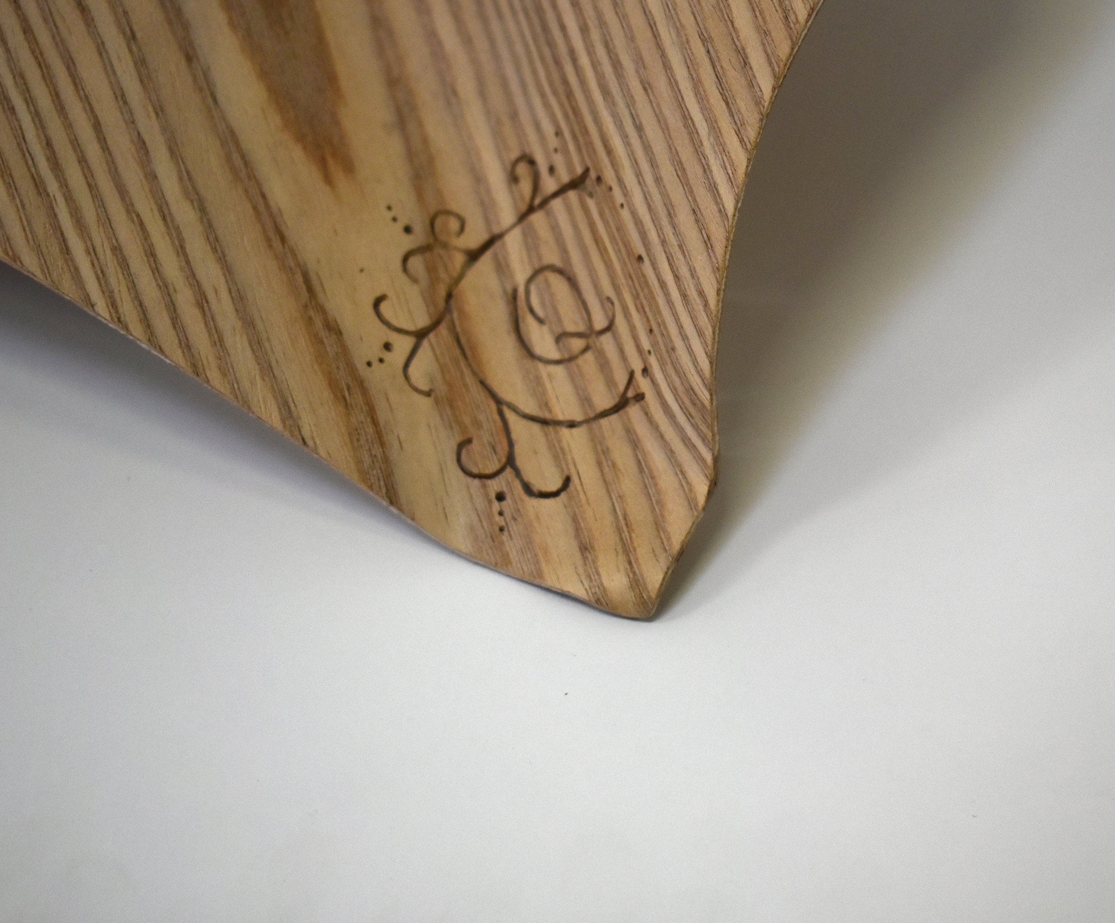 Doblado por laminación en madera de Roble blanco, calado en la punta con las letras del abecedario